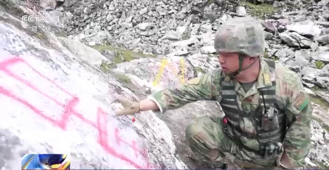 西藏军区某边防团战士 禹鹏飞:当我背上40多斤的巡逻物资和装备踏上这条7天6夜的巡逻路时,我才知道这条路是多么的难走,蚂蟥、毒蜂无处不在,但是当我到点到位宣示主权,在石壁上写下大大的中国时,那一刻身上的疲惫都消失殆尽。