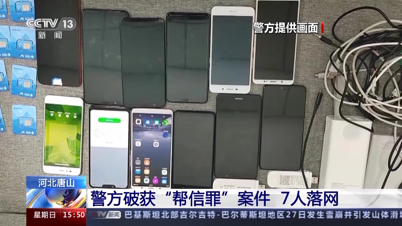 唐山市公安局路北分局反诈中心民警 尹猛:他们每个人都有两部手机和一张电话卡,其中的一部手机安装了远程控制软件,并且用音频连接线连接到另外一部装有电话卡的可拨打电话的手机,通过电话软件与境外电信诈骗分子勾结进而实施电信诈骗。