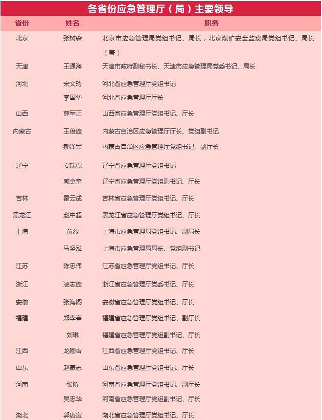 11月30日,新疆维吾尔自治区应急管理厅正式挂牌。截至目前,31个省份应急管理厅(局)挂牌成立,领导班子走马上任。下面,让我们来查看详情……