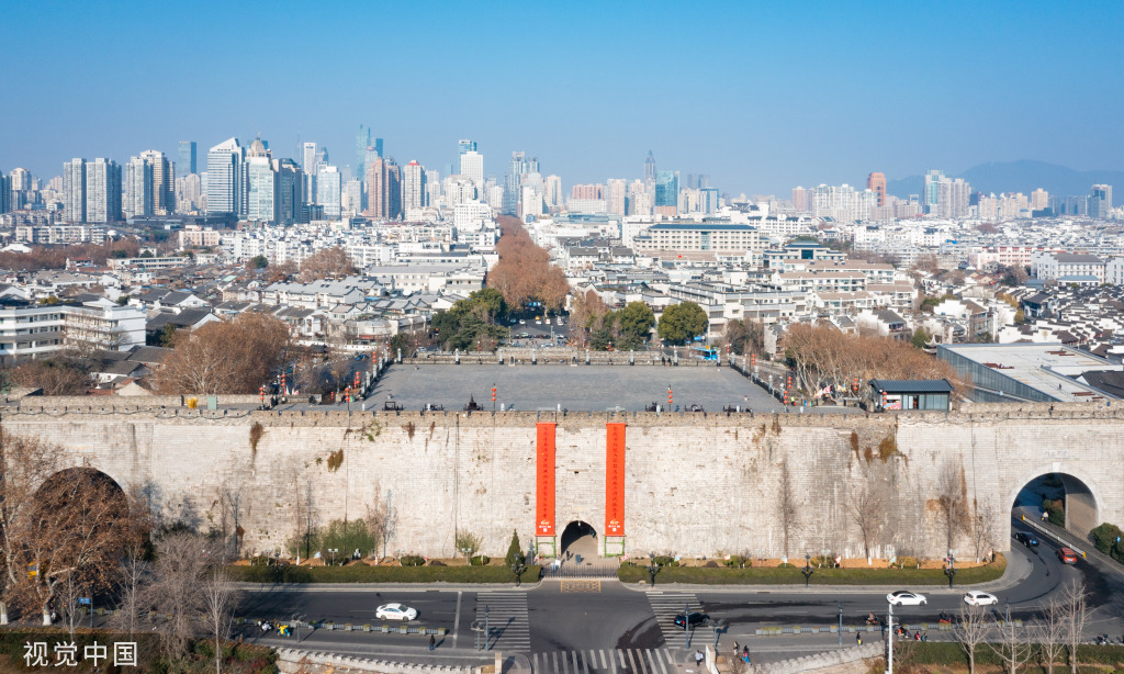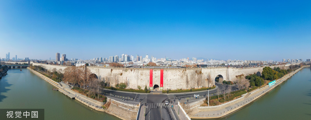 南京玄武门等13座城门挂巨幅春联 迎新春佳节