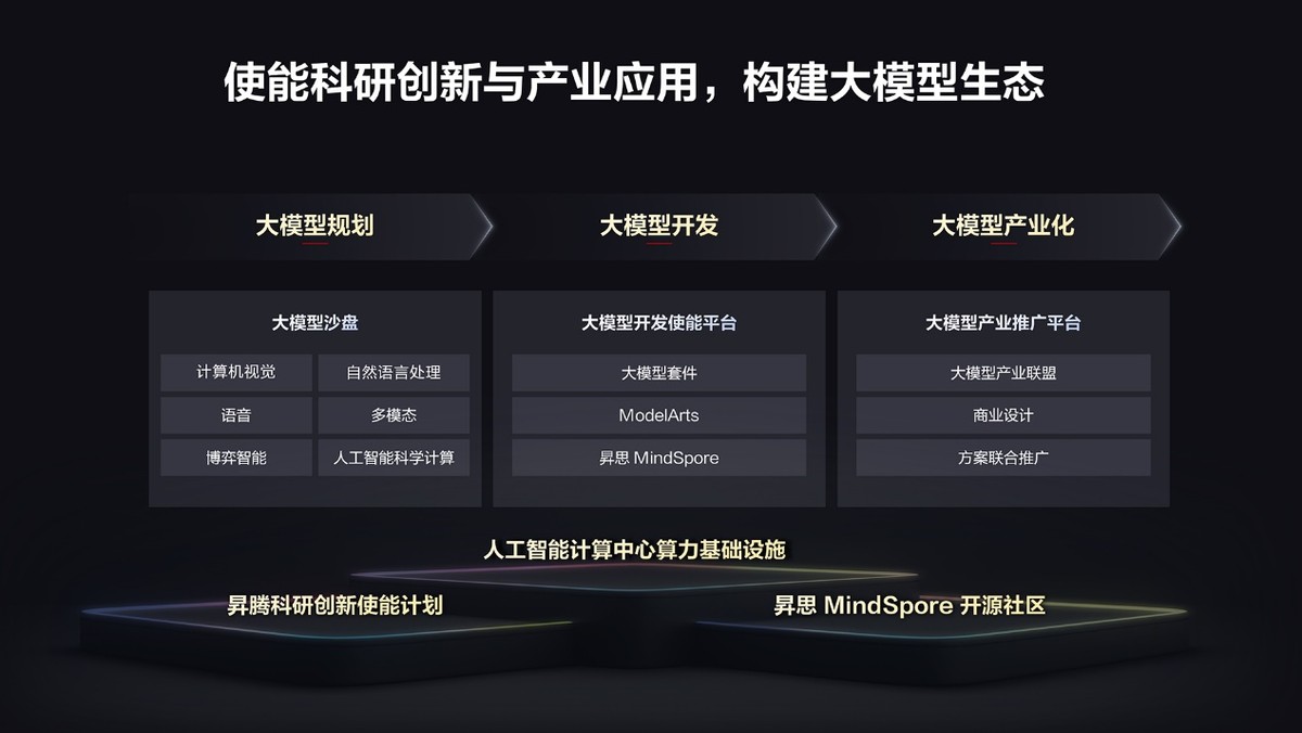 规划昇腾大模型沙盘,构筑中国大模型创新高地。过去的一年,产业界基于昇腾AI先后推出鹏程.盘古、鹏程.神农、紫东.太初、武汉.LuoJia、华为云盘古系列等有影响力的大模型。今年,华为发布昇腾科研创新使能计划,鼓励高校和科研机构开展大模型的研究与创新,在每个领域和行业打造出世界级领先的大模型。