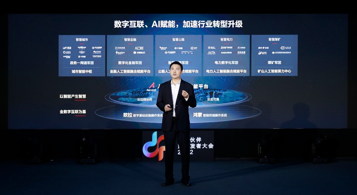 【环球网综合报道】6月15日,在华为伙伴暨开发者大会2022上,华为公司副总裁、计算产品线总裁邓泰华发表“共建计算产业,共创数智未来”主题演讲,分享鲲鹏、昇腾、欧拉在商业、生态、技术方面的最新进展,并带来系列重要发布:9家伙伴同期发布欧拉操作系统商业发行版;中国算力网——智算网络正式上线;大模型全流程使能体系发布,共筑中国大模型生态;从科研创新到行业落地,开创AI大模型产业化新模式;发布行业数智化转型新架构,加速行业数字化转型和智能升级。