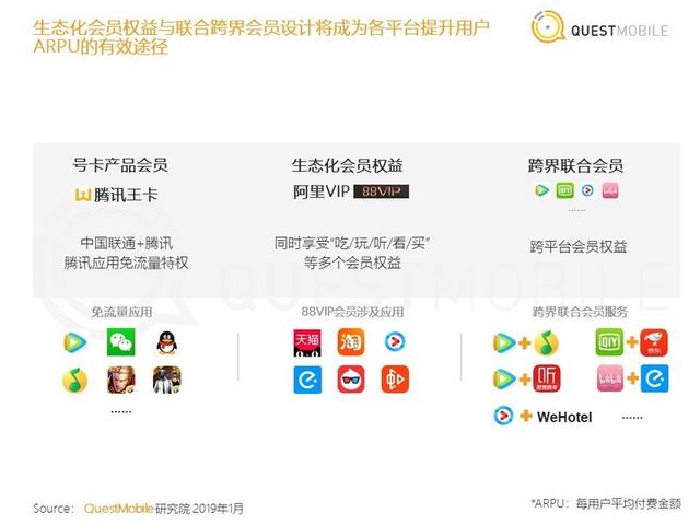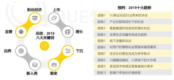 2019年,IoT将最先受益于5G;拼多多和抖音的强势崛起都说明了垂直赛道远未形成定局。小程序和快应用的迅速发展使得流量入口的竞争更加激烈。88VIP以及“爱奇艺&京东”、“饿了么&哔哩哔哩”等新兴会员形式的出现令生态化会员成为新的争夺焦点。以B站为代表的二次元、足球和跑步等圈层属性明显的节目走向大众彰显小众市场的巨大潜力。