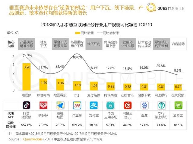 【趋势3:垂直赛道仍有良好的增长机会】垂直赛道远未形成定局,拼多多和抖音的强势崛起都说明了垂直赛道未来依然存在“逆袭”的机会。用户下沉、线下场景、产品创新、技术迭代均能帮助垂直行业获得新的增长。