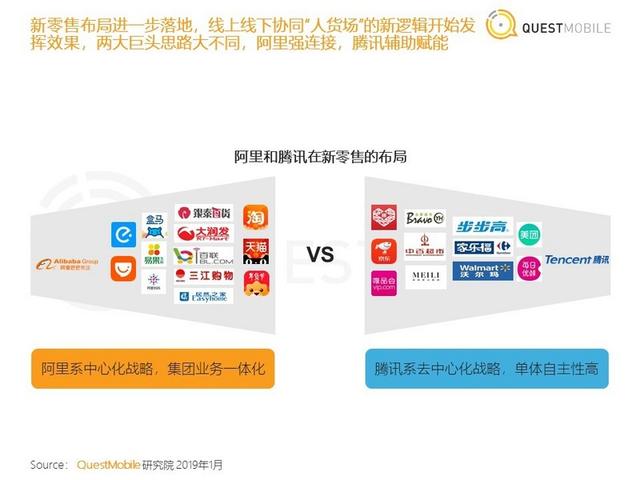 【趋势5:线下流量新玩法】线下流量的争夺中,阿里采用中心化战略,强调集团业务一体化;而腾讯采用去中心化战略,单体自主性较高。商业综合体、新物质、社区小店全方位与线上联动,阿里系在新零售的布局和落地效果上走的更“深”更“稳”。