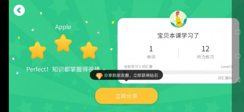 叽里呱啦即学即打分的设计也是其互动设计的一环,用学习刺激孩子的成就感,用成就感反过来反哺兴趣。