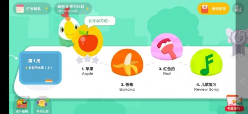 “呱呱美语课”分级很清晰,针对每个孩子的年龄阶段,可以选择不同的分级课程进行学习。比如,2-3岁的Lv0课程注重早教和启蒙,通过场景化的教学让孩子习得一些常用的生活词汇,如多彩水果类(香蕉苹果橘子等)、人物关系类(爸爸妈妈爷爷奶奶)等,日常单词轻松get。这阶段重在对孩子的输入上,以积累大量听力词汇为主。
