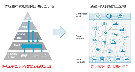 传统的‘金字塔’式工业体系架构无法跨层交换数据,难以实现数据在全网的高效流动,工业的数字化、智能化发展,需要打造新的“路网系统”。新一代工业网络以“设备网联化、网络IP化”为关键特征,具备全面深度感知数据、实时传输交互数据、按需部署AI算力的能力。