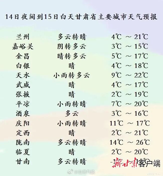 来源:新甘肃客户端(新甘肃·甘肃日报记者 王思璇)、中国天气网