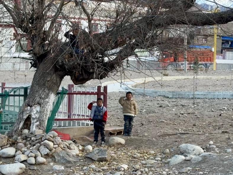 采访结束那天,车缓缓驶离边坝县烈士陵园。突然,两个本在树下玩耍的六七岁藏族孩子,冲出来立正敬礼。