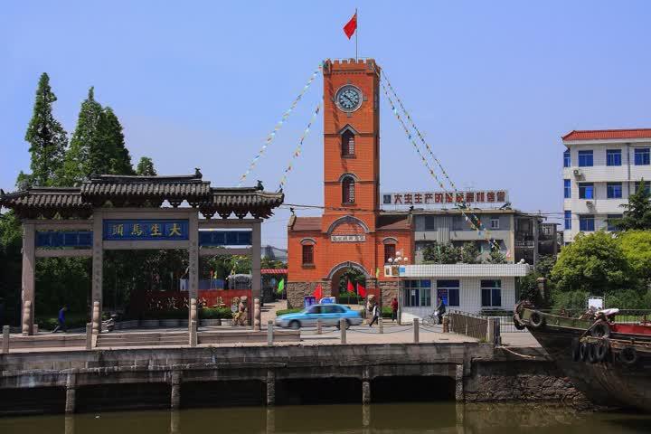 那些早已泛黄的岁月里,通扬运河上帆影如织,桅樯林立。大生纱厂钟楼前的大生码头,一条条载满原棉的拖驳到此抛锚停泊,等待卸载;一批批纱布成品货船由此解缆离岸,争先水道。汽笛声、纤夫与搬运工的号子声此起彼伏,昼夜不绝,热闹非凡。