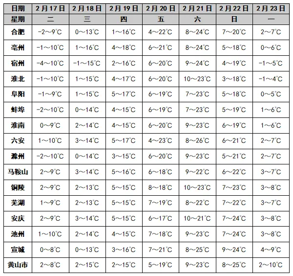 据安徽气象最新预报