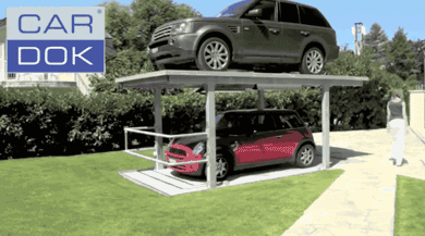 相比普通的停车库,停车空间扩大了两倍!当第一辆车挺好后,系统会自动升起来,给出第二辆的停车位。