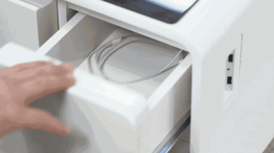 打开茶几最大的抽屉,它其实是个迷你冰箱,可容纳32瓶酒水饮料,以后在客厅看电影再也不用特地跑厨房去拿喝的了。
