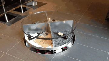 打开移动设备的蓝牙与这台智能茶几连接,就能用茶几内置的扬尘器放歌了,播放的同时茶几下方的LED灯还会跟着音乐变换灯光,营造氛围。