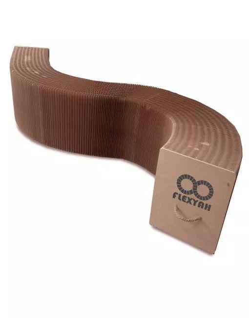 由可再生硬纸板做成的FlexYah折叠椅,不展开它的时候,看这厚度还以为是本书。但一拉长,就变成了一个最长有3.4米的长椅。
