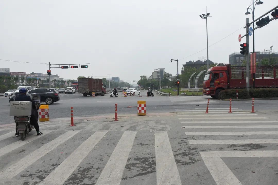 因为该路口设置了“防撞桶”
