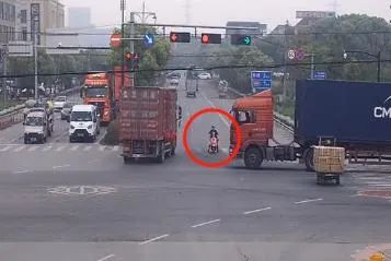 而且是在多辆大货车转弯时