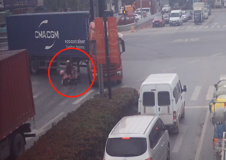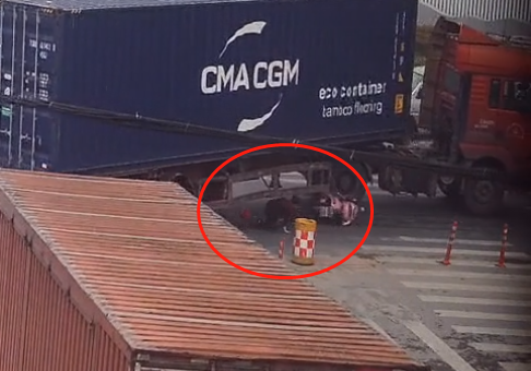 浙江海宁某路口,驾驶人被卷到了货车底,买的鸡被碾压成肉饼…