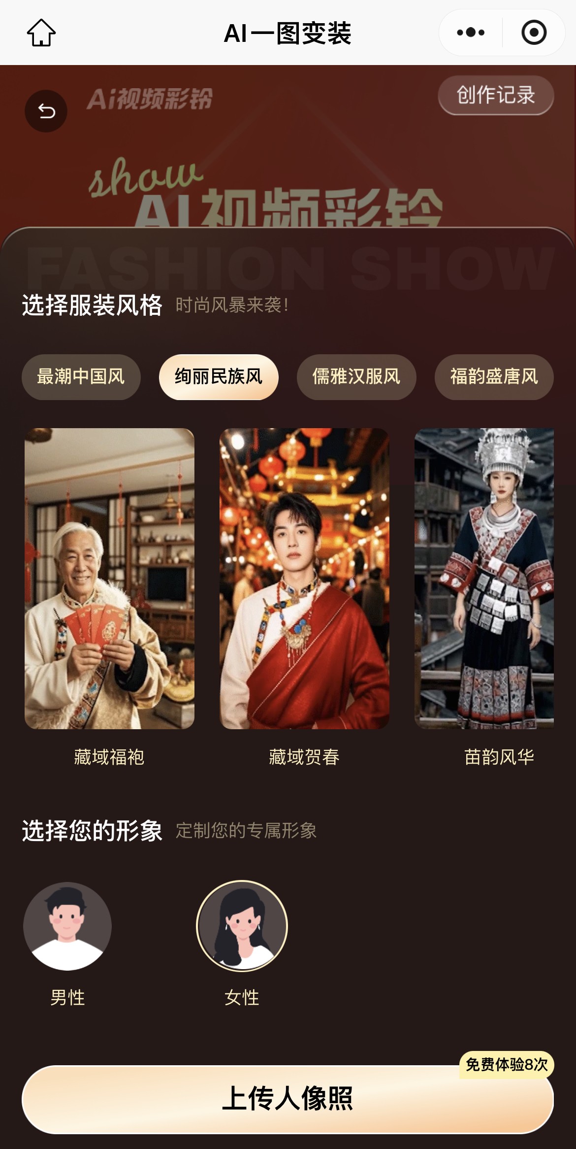 通过AI视频彩铃不仅可以了解更多年俗知识,还能创作家乡的年俗视频。“AI一图变装”上线藏族、苗族、傣族等不同民族的丰富服饰模板,上传个人照片,选择你喜欢的风格即可一键换装,模板还融合了杨柳青年画、舞狮等非遗元素,将地域民俗韵味浓缩到15秒的短视频中,让每一个人都能成为家乡非遗“代言人”。