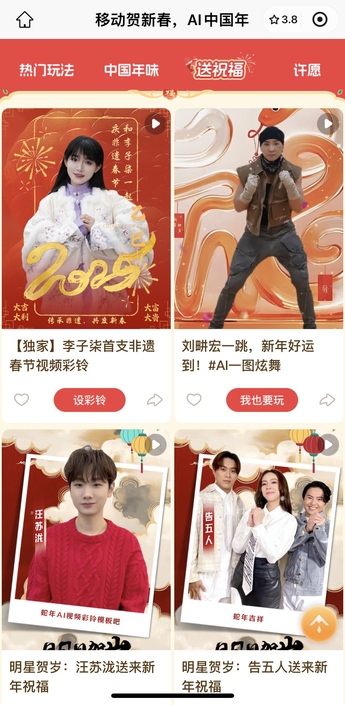 邀全球共度AI中国年 中国移动AI视频彩铃推出超千款新春模板