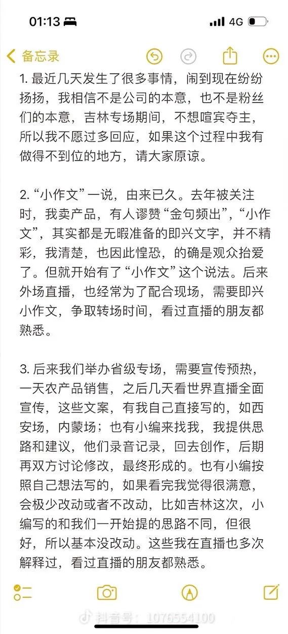 对于吉林场的“小作文”,董宇辉表示小编的思路与他一开始的有所不同,但很好,因此基本上没有进行太多修改。