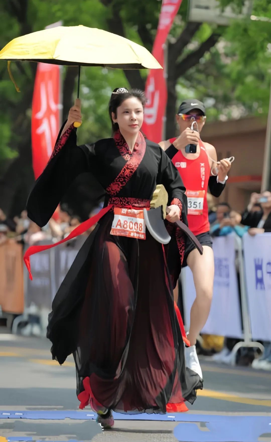 此前,杨文娟也曾以殷商女将军妇好和杨家女将的造型分别亮相河南安阳马拉松和郑开马拉松。