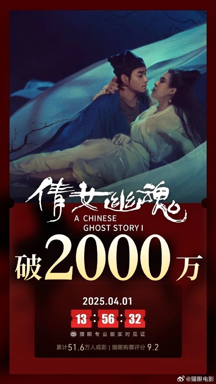 4月1日,据猫眼专业版数据,电影《倩女幽魂》总票房破2000万。