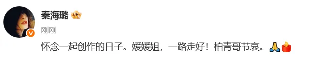秦海璐:“怀念一起创作的日子。媛媛姐,一路走好!柏青哥节哀。”