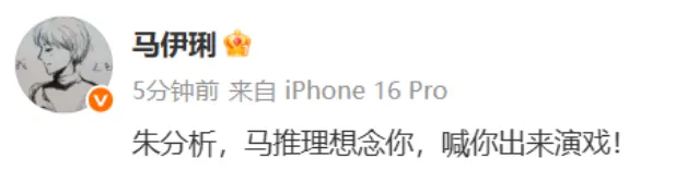 马伊琍:“朱分析,马推理想念你,喊你出来演戏!”