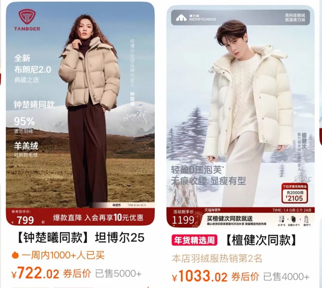 (左图:坦博尔羽绒服 右图:美力城羽绒服)