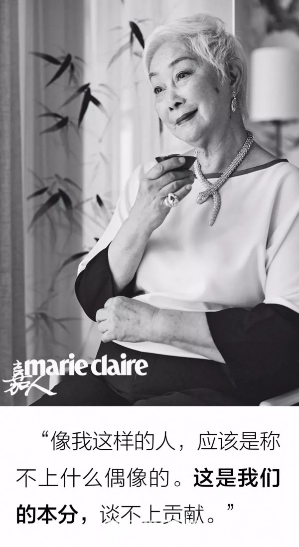 靳羽西在向我们夸耀自己的小男友多么优秀时,神色依然像一个骄做的小女生;陈爱莲穿着五彩斑斓的长裙飘'进摄影棚的时候,身段姿态不亚于任何在场的年轻姑娘;卢燕顶着35度的酷热天气拍外景毫无怨言,一直在追问摄影师“您看看我这样拍美不美”;潘迪华在看完我们的版式后,放心地对我说,“我对摄影师说了不要修图,我是什么样子就拍成什么样子。现在这样,真好。