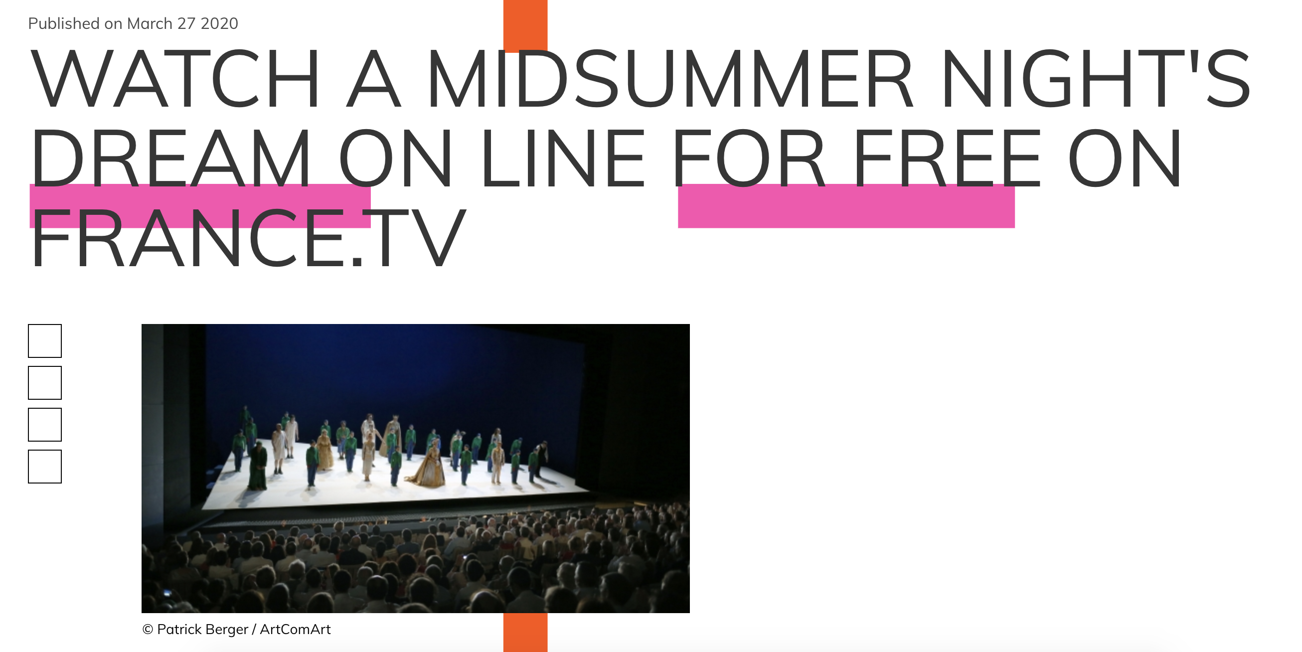 近日,在FRANCE.TV,埃克斯艺术节免费发布了本杰明·布里顿的歌剧《仲夏夜之梦》,这一歌剧被誉为“20世纪歌剧艺术的瑰宝”。