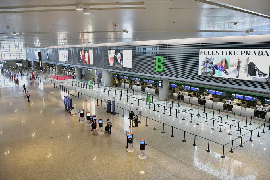 2021年9月13日,受“灿都”影响,上海虹桥机场停运3点所有航班,机场办票柜台异常冷清。