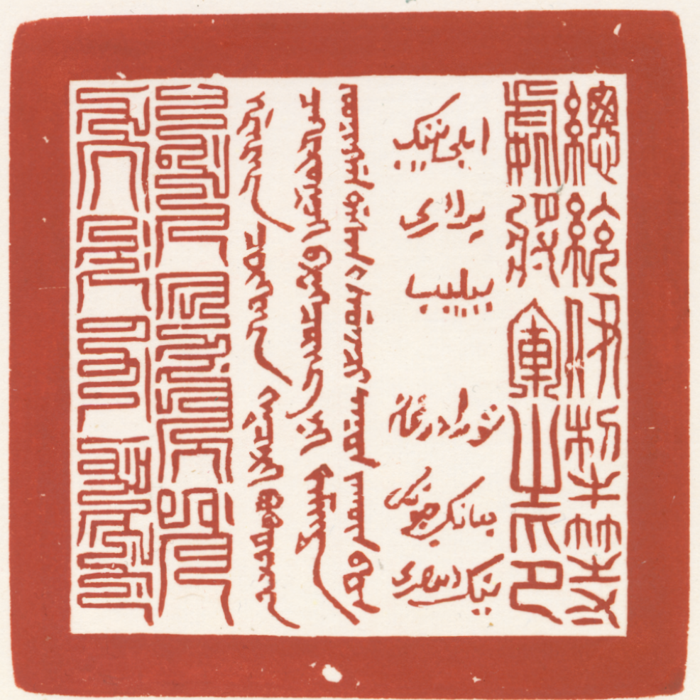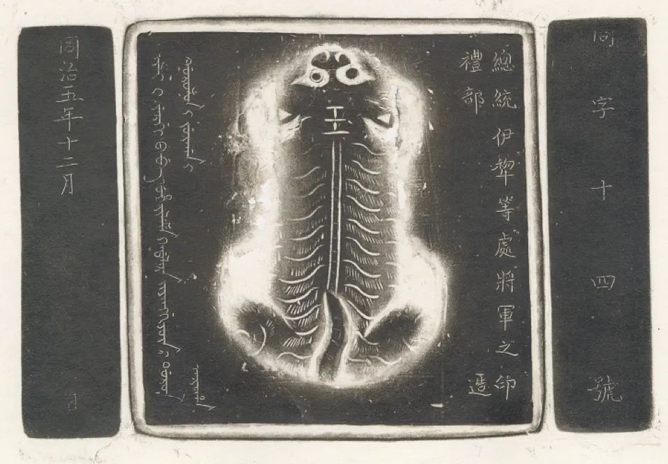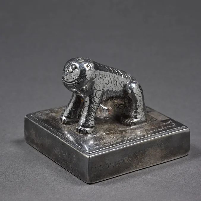 同治五年重新制作的“总统伊犁等处将军之印”虎钮银印,印面使用了满、蒙、回、汉四种文字,是目前仅存的一方4种文字对译的将军印。其实际行用时间近半个世纪,是祖国多民族融合统一的重要物证。