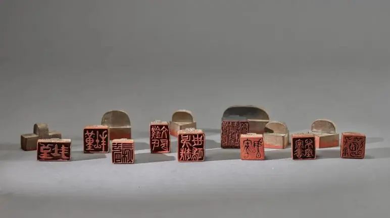 中国篆刻通史陈列由考古出土为主的唐宋元明各时代的文房用印开启,新设以溯源为目的的“文人用印的早期阶段”单元。主要活动于北宋末年的钱世瑞15件木质文房组印是其中代表展品。
