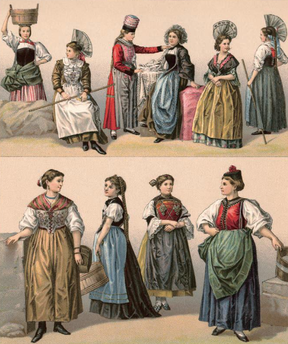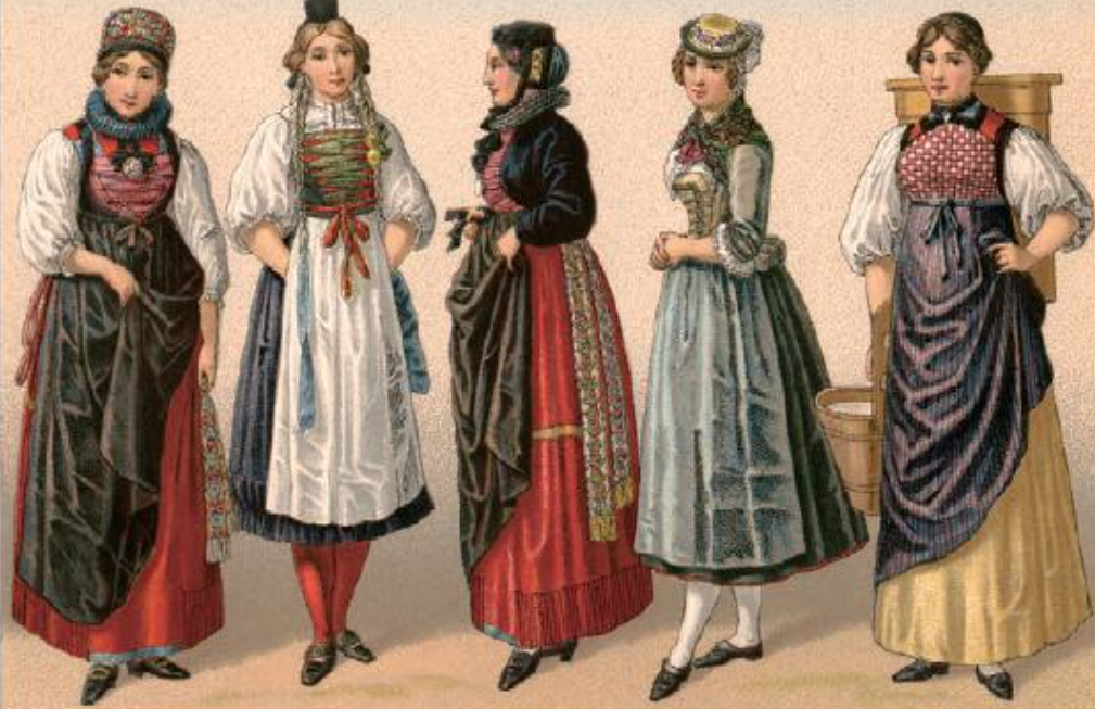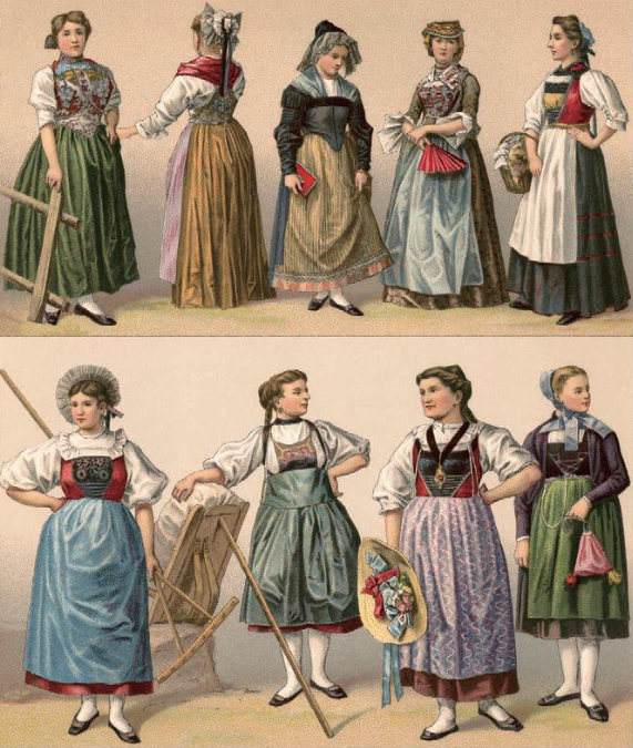 伯尔尼、阿彭策尔、弗里堡、乌里、卢塞恩、施维茨、翁特瓦尔登等地女装