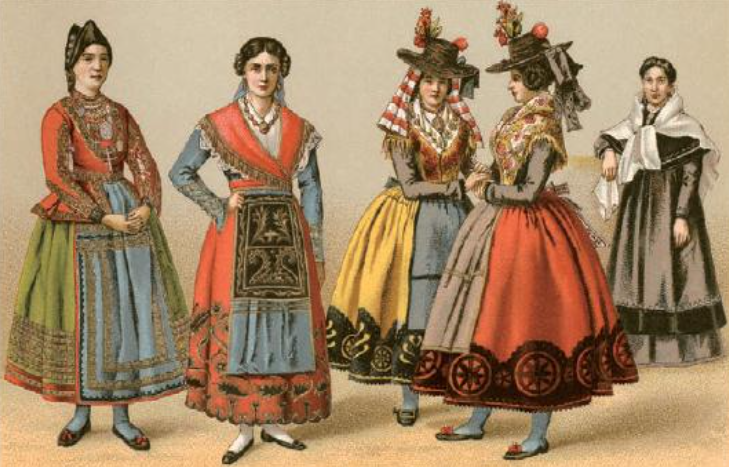 今天我们聚焦于19世纪欧洲部分国家的女子服饰,直接来一波视觉大赏。