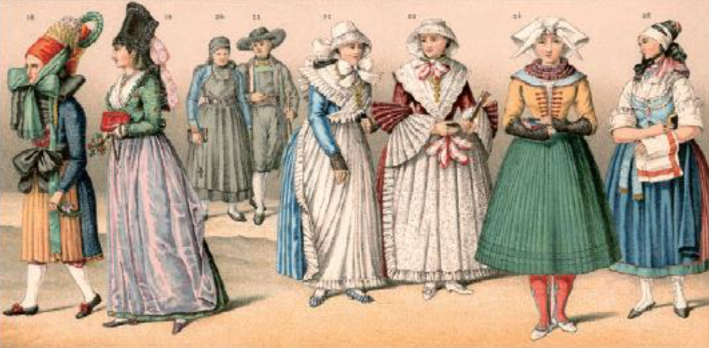 从维多利亚时代鲸骨撑起的三米裙围,到农妇磨破的亚麻围裙;从巴黎沙龙里缀满蕾丝的晚礼服,到德意志乡村褪色的印花头巾——服饰从来不只是布料与针线的游戏,更是阶级的宣言、工业的棱镜与女性觉醒的密码。
