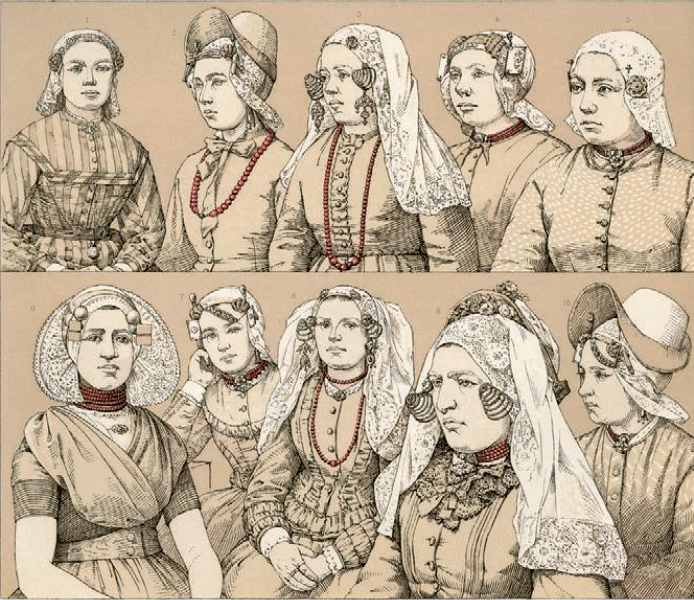 纳韦尔、多菲内、尼斯、萨瓦、马孔、布雷斯及波旁内地区民族服饰