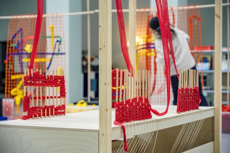 “编织,一起吗?” 由法国建筑师兼艺术家艾米丽·克内(Émilie Queney)与蓬皮杜中心合作设计,是一项大型公共编织项目,涵盖多台可移动织机和编织基站。