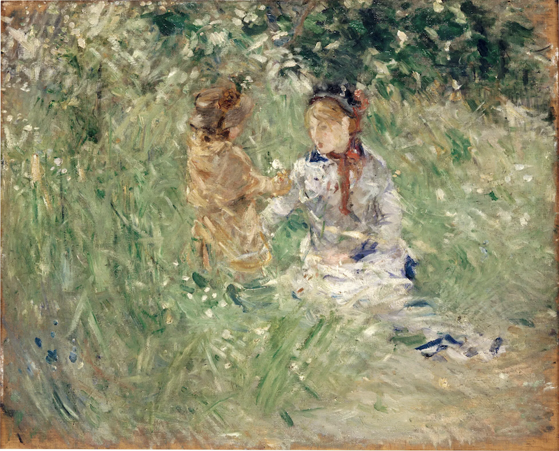 贝尔特·莫里索,《布吉瓦尔草地上的女子与孩童》,1882年