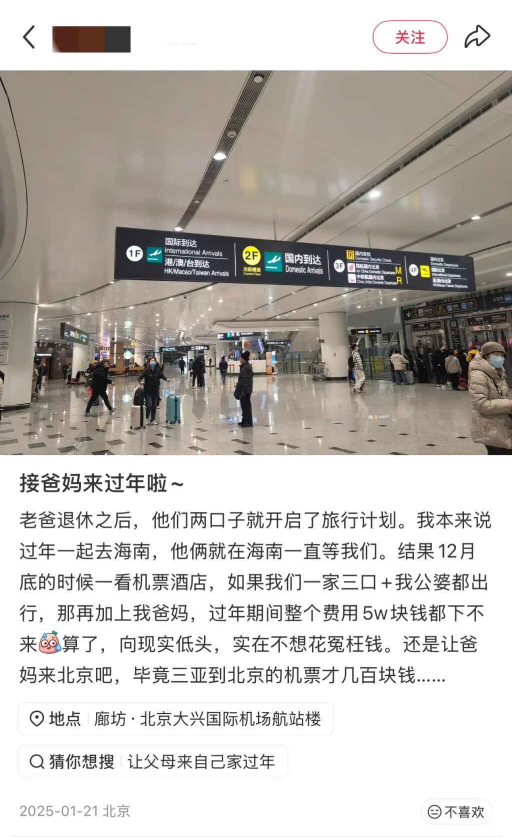社交平台上,不少网友晒出自己在机场、火车站等候接父母的照片。