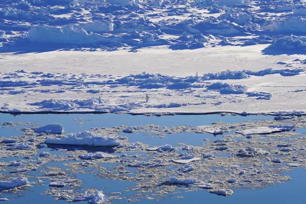 慢慢到来的极昼对于习惯昼夜交替的普通人是个需要适应的过程,但对于行船和科考无疑是一个福利,可以更清晰地掌握一切——姿态各异的冰山;大大小小的浮冰区;成堆的企鹅站在一起,一个一个跳到海里;海豹母子在冰盖上打滚;鲸鱼在“雪龙”号两侧并行,浮出海面喷水。