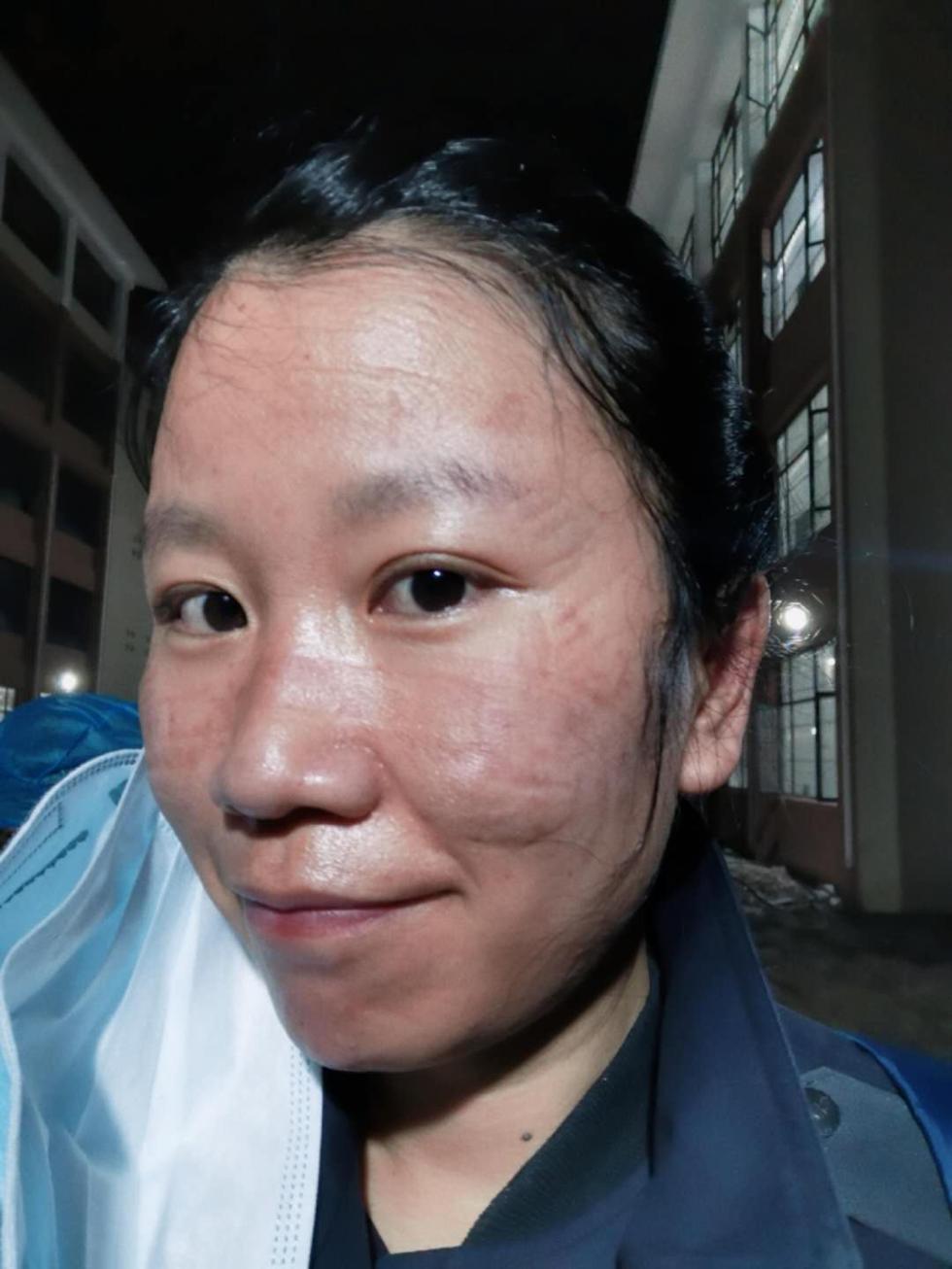 防护装备在黄琳脸上留下勒痕。 本文图片均受访者供图