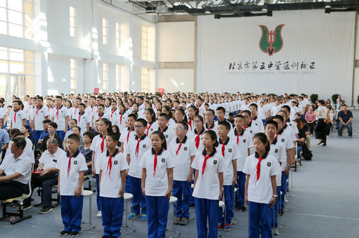北京五中通州校区今日揭牌 首批新生上开学第一课