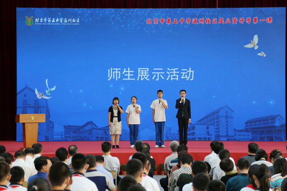 8月31日上午,北京市第五中学通州校区成立暨开学第一课在学校体育馆举行,东城区委教工委副书记聂圣立、通州区教委主任申键共同为新校区揭牌,这标志着又一所优质校进驻通州。