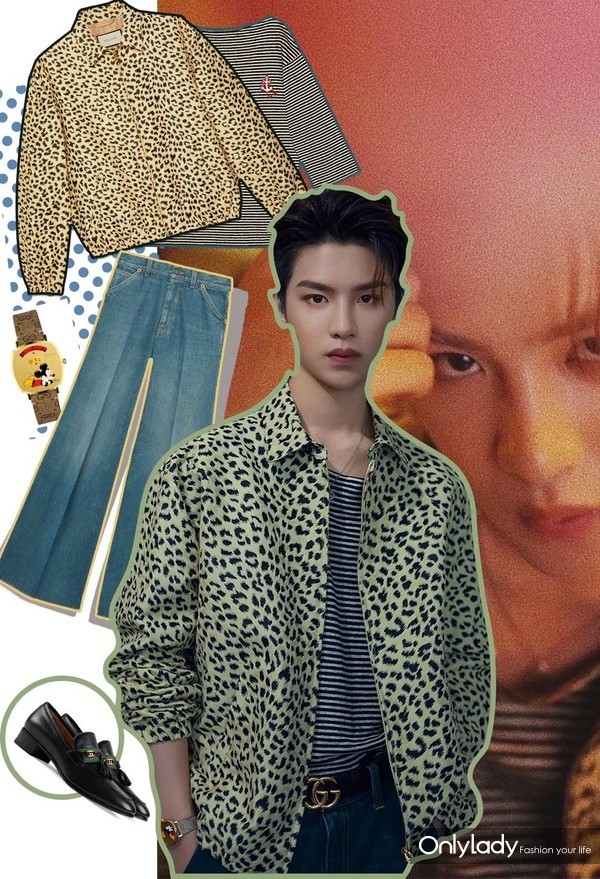 黄明昊上身狂野的Gucci豹纹夹克,尽情挥洒不拘一格的个性,是勇气无限的大男孩没错了!仔细一看,Justin手上戴的还是Disney x Gucci Grip系列腕表,心有猛虎、细嗅蔷薇的反差萌,也太可爱啦!