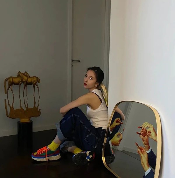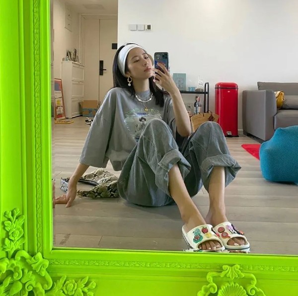 周雨彤家里那面荧光绿大镜子,在不少照片当中充当点睛(以及强吸睛)的绿叶,即使蜗居在照片的角落当中,都有着自动变C的效果。