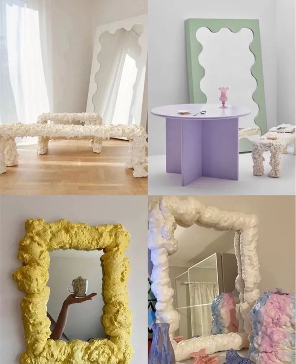 发泡胶遇上不规则的镜子外形更是无法无天了,像一朵懒懒的云。